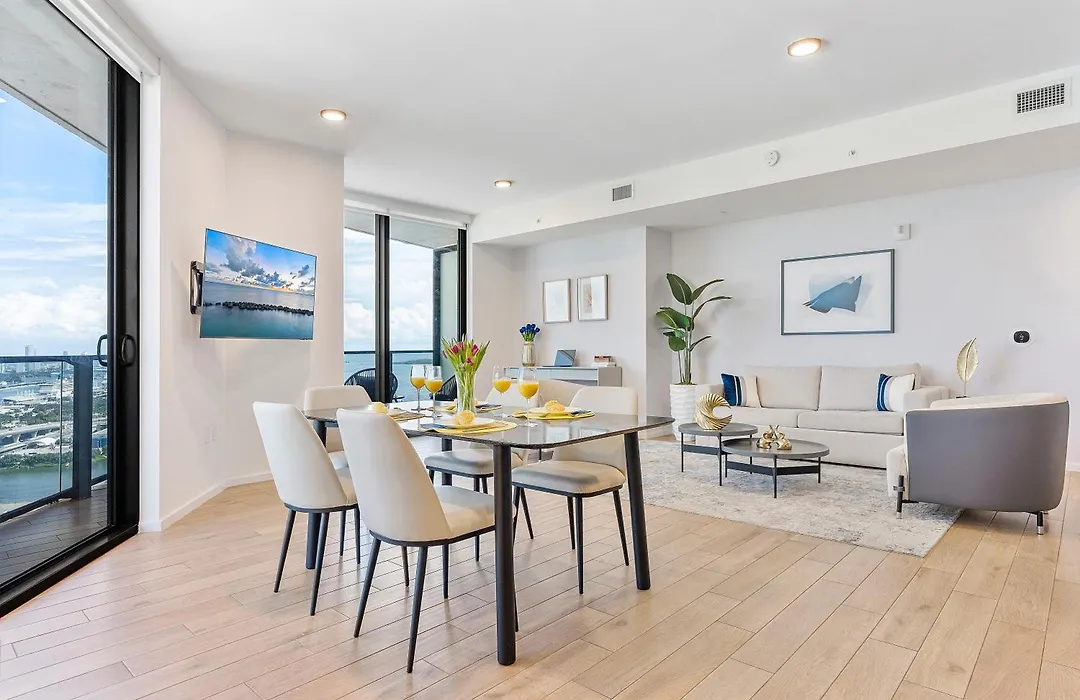 Eine komplette Küche ist in den Zimmern dieser Apartments vorhanden. Der Flughafen Miami International befindet sich 15 Fahrminuten entfernt, und die Bushaltestelle Biscayne Boulevard & Northeast 6th Street liegt circa 5 Gehminuten von den Apartments entfernt. Um sich fit zu halten, stehen den Gästen ein Fitnessstudio im Gebäude zur Verfügung, wo auch Yogastunden angeboten werden.